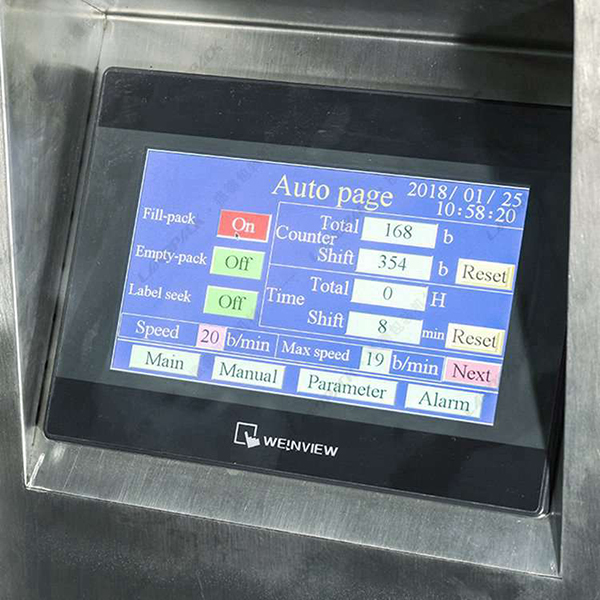 LD-420A顆粒定量包裝機(jī)中英雙語觸屏控制,人機(jī)界面,通過智能化系統(tǒng)控制全機(jī)參數(shù),調(diào)節(jié)機(jī)件運(yùn)行,電動拉膜卷軸,外置式放膜機(jī)構(gòu),包裝膜安裝更簡單、更快捷。電控組件電子控制模塊,所有控制由軟件運(yùn)行編程,實(shí)現(xiàn)可靠,維護(hù)方便。對射雙光標(biāo)電眼采用高感度光標(biāo)電眼精確跟蹤卷,膜色塊,防止卷膜走偏。松下伺服控制器,運(yùn)行系統(tǒng)更加完善,精確控制,拉膜電機(jī),使拉膜更加穩(wěn)定,傳動機(jī)構(gòu)簡潔,工作更可靠,運(yùn)動協(xié)調(diào)性強(qiáng),維護(hù)方便。