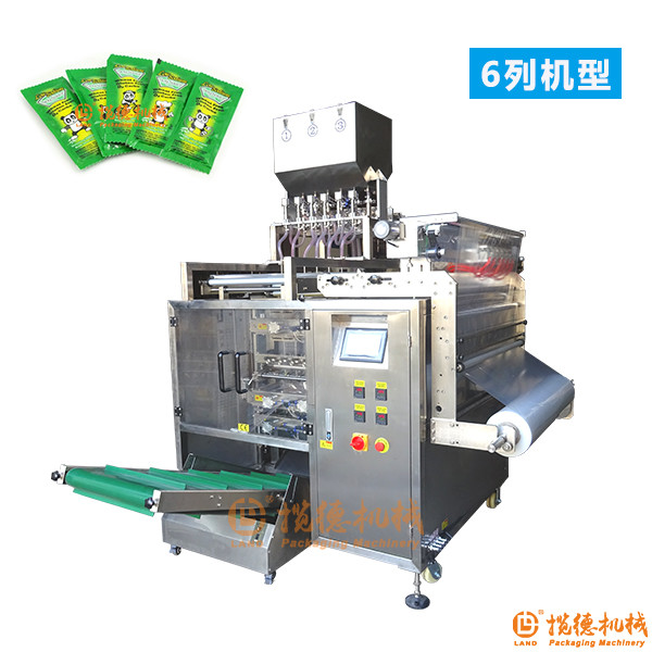多列邊封液體包裝機(jī)是一款專門用于包裝四邊封口液體類型物料的全自動(dòng)多列液體包裝機(jī),該機(jī)分為4列、6列、8列等多種類型,采用液體活塞泵或者蠕動(dòng)泵進(jìn)行物料的計(jì)量和灌注。如果需要10或者跟多,可以根據(jù)用戶的需求進(jìn)行定制開發(fā)。