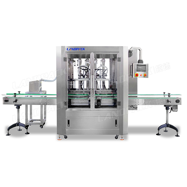2.本線采用自動送瓶、4頭伺服活塞灌裝機、振動盤自動上蓋、四輪旋蓋機組成自動化生產(chǎn)線;