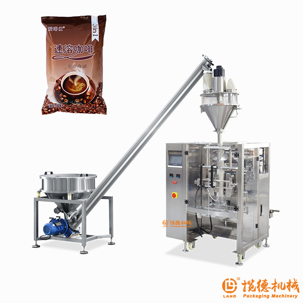 四邊封咖啡包裝機(jī)采用螺桿上料系統(tǒng),工作人員只要將咖啡之類的粉末倒入儲料斗里面然后通...