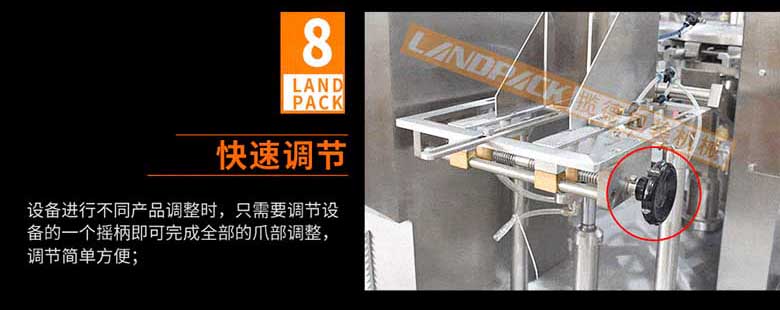 8、快速調(diào)節(jié):設(shè)備進(jìn)行不同產(chǎn)品調(diào)整時(shí),只需要調(diào)節(jié)設(shè)備的一個(gè)搖柄即可完成全部的抓部調(diào)整,調(diào)節(jié)簡單方便;