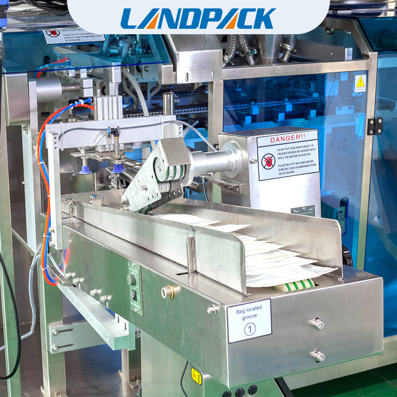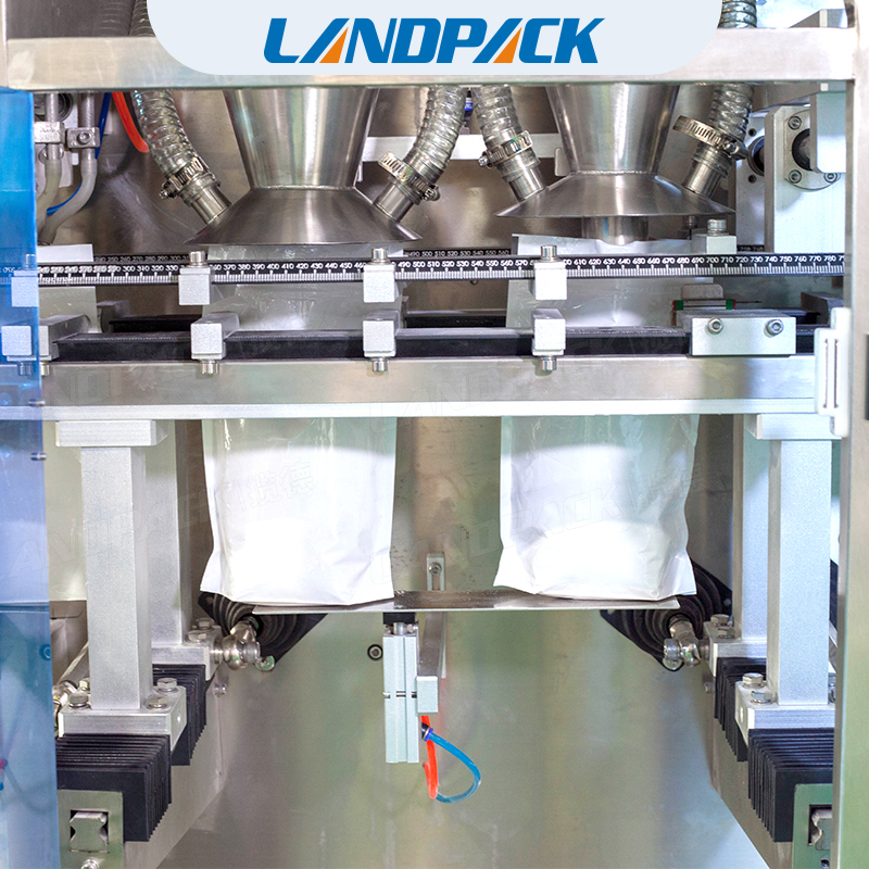 調(diào)味品混合包裝機(jī)它代替了手工包裝,操作人員只要將做好的一個(gè)一個(gè)的袋子,一次性將幾百個(gè)袋子放在設(shè)備的取袋部,設(shè)備機(jī)械手會(huì)自動(dòng)的取袋、打印日期、開袋、給計(jì)量裝置信號(hào)計(jì)量并落料、封口、輸出。